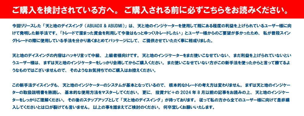 ※「天と地のデイスイング」は2024年11月1日発売予定となっております(天と地のインジケーターのユーザー様のみご購入できます)