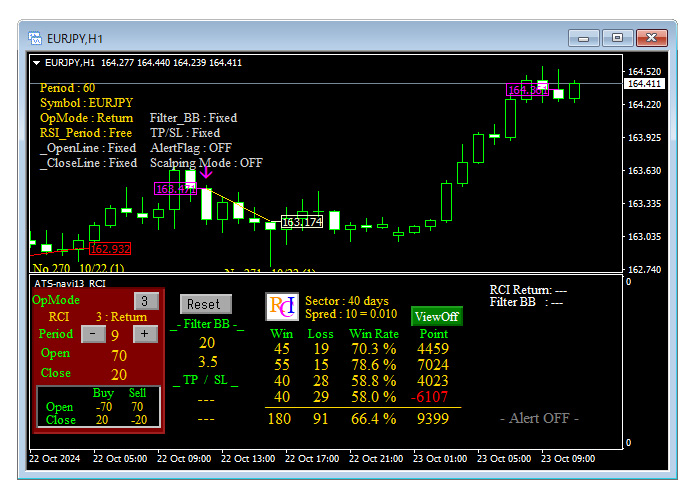 手動で行うと時間がかかる検証作業も、ATSを使えば数秒で正確な答えが得られます。例えば、RCIの設定条件を変えてみたとき、その取引方法が通用するのか、通貨ペアや時間足が今の相場に適しているかを即座に確認することができます。