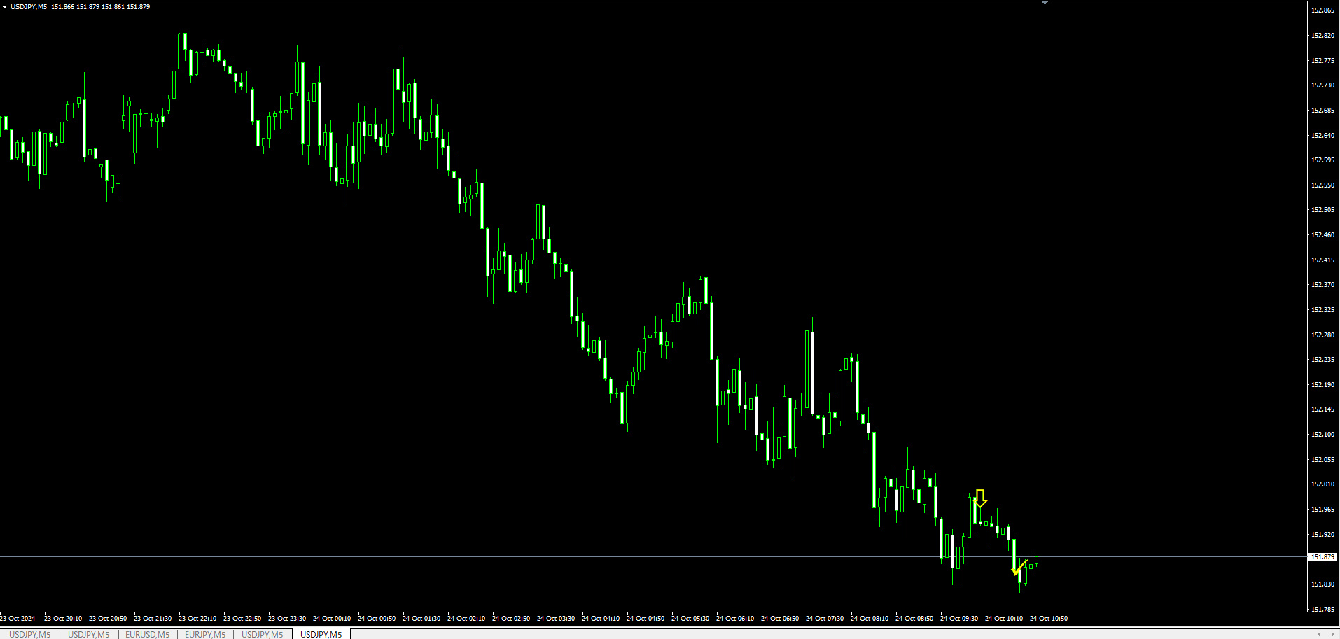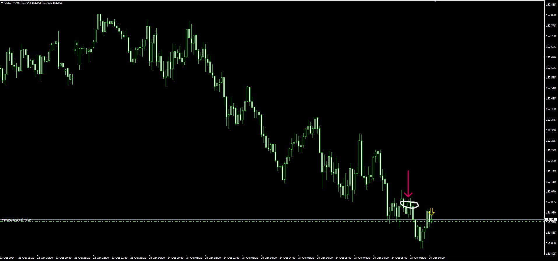 ドル円の売りですが、チャートを見たときはすでに下降トレンドに突入していました。