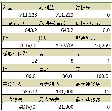 【今週の利益・手法解説】+711,223円 +643.2pips