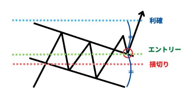 上側のトレンドラインをブレイクすると再び上昇トレンドが継続します。