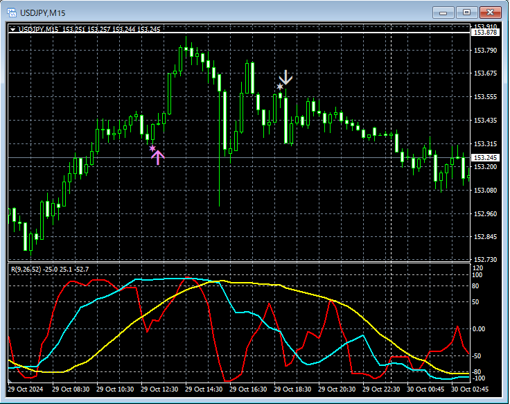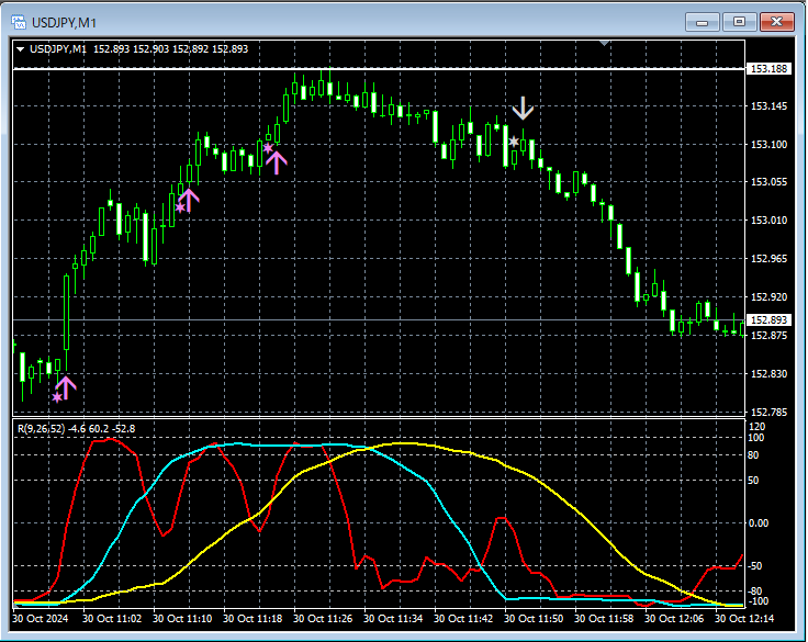 【RCIを極める!!】昨日(2024年10月30日)のドル円チャートから