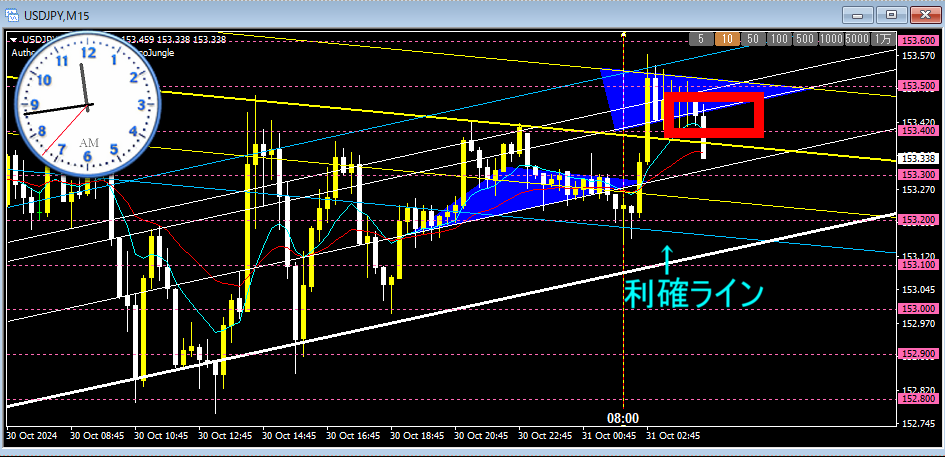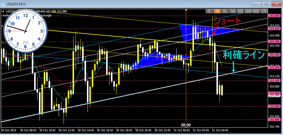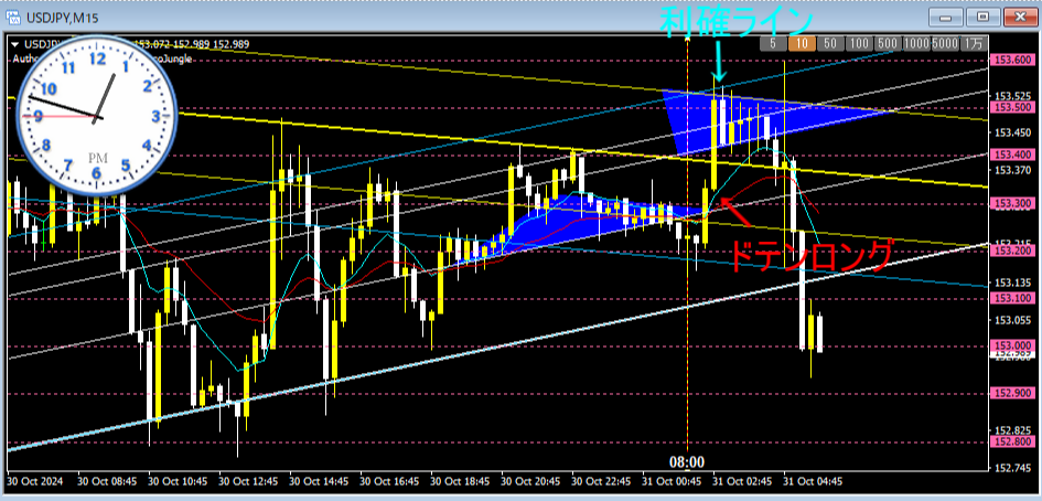 利確位置は153.00のラインですが・・・( ゚Д゚)