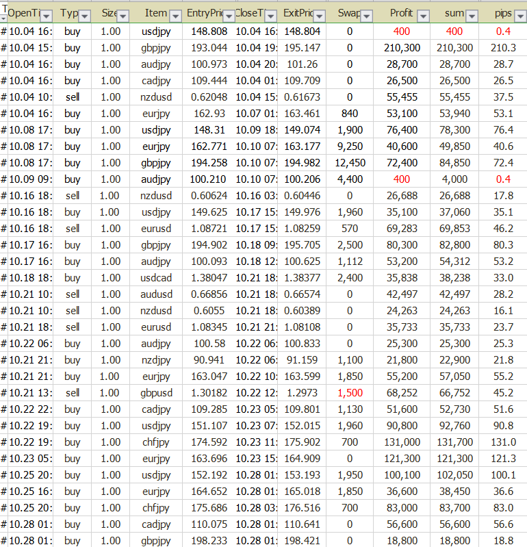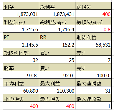 早くもフォワード計測を開始してから6か月が過ぎましたが、10月の利益が月間最高益を更新しました(*´▽`*)利益は180万を超えただけでなく、損失がほぼ0に近い成績をたたき出すことに成功しています。