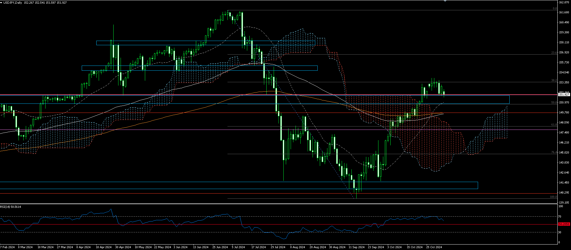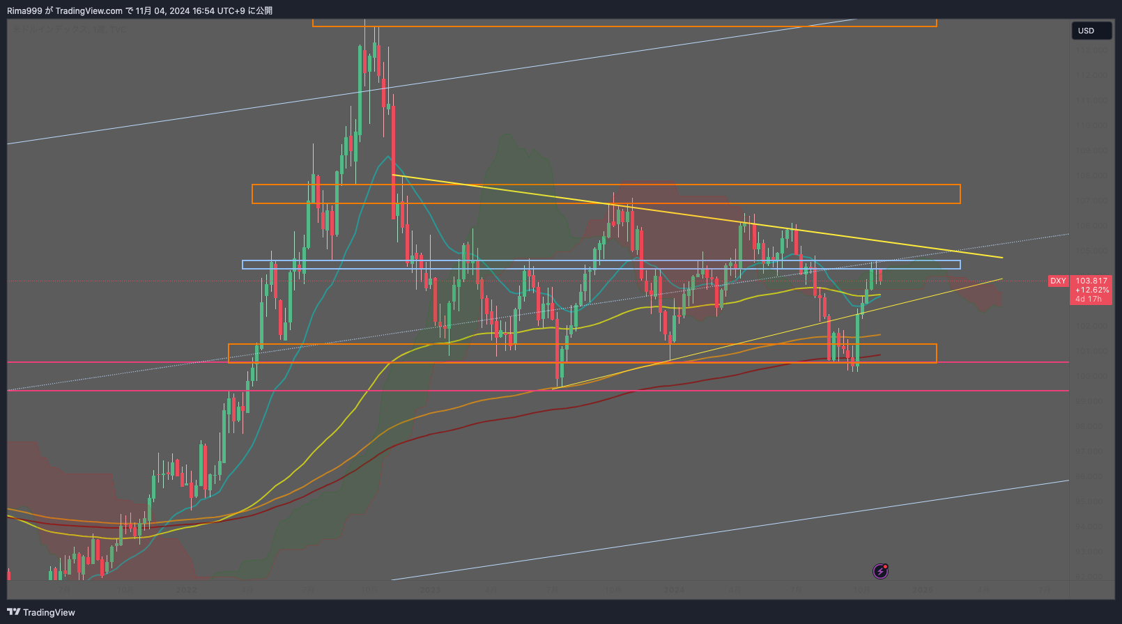 - →月替りや米大統領選挙開票の週となるため大きく動くことも想定して次の週足がどうなるかは要注目