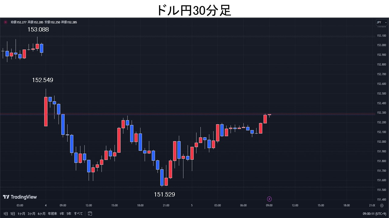 ドル円、トランプ・トレードの巻き戻しで一時151.52円まで反落。