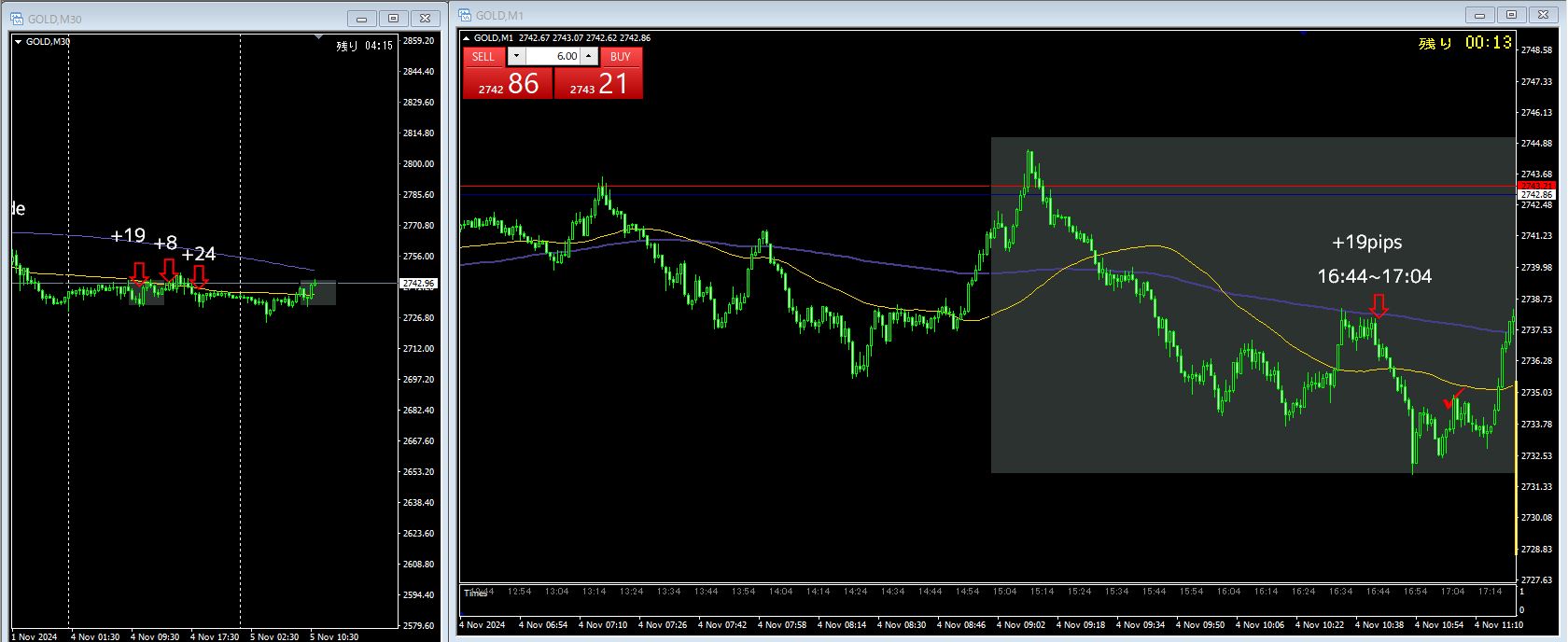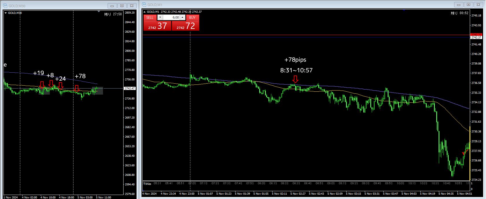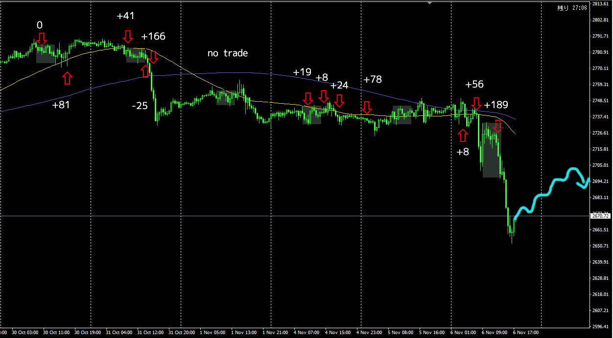 ここはちょっと早かったかなと思ったのですが、結果的には売りで正解だったなと思います。