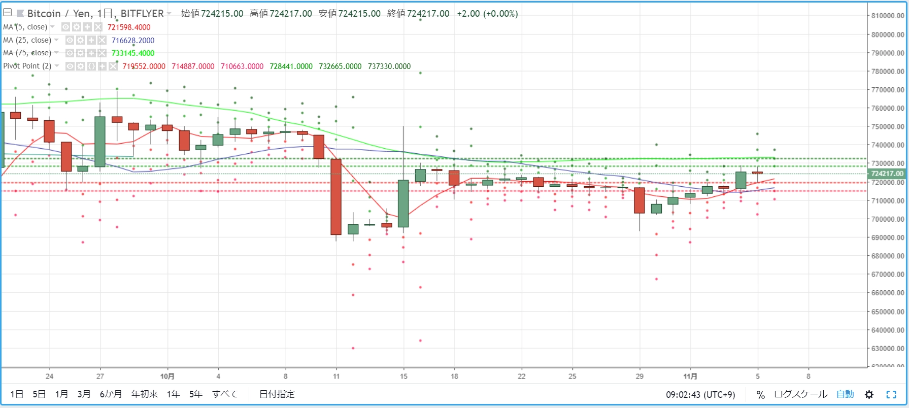 画像は2018年11月07日のキャプチャ。「緑」が目立った強気環境が、より力を増して継続しています。ビットコインキャッシュは12%超、リップルは約10%の上昇! イーサリアムやライトコインも、強く上昇しています。その代わり、ビットコインは弱め。ビットコインから、他の主要銘柄に流れ込んだイメージです。