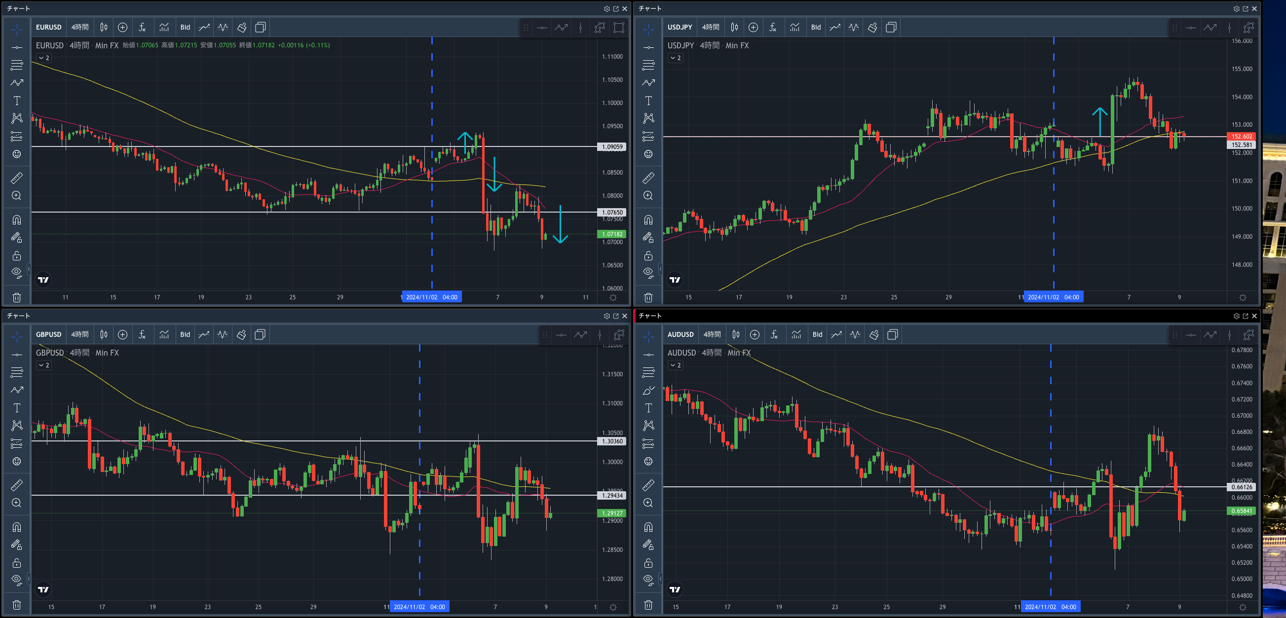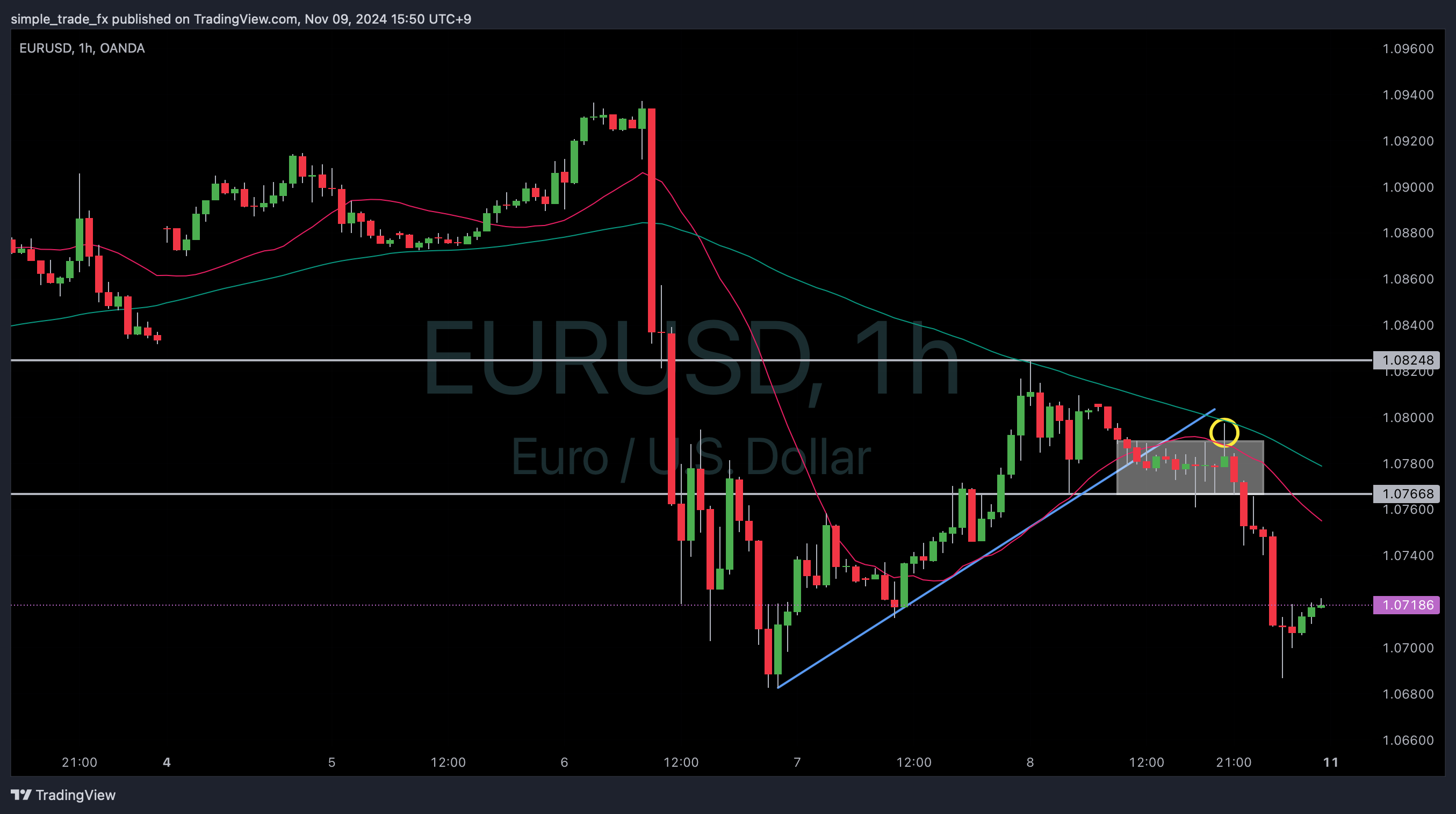 11月8日(金) のユーロドルの値動きを例にダマシの動きを利用することについて書いていきます。
