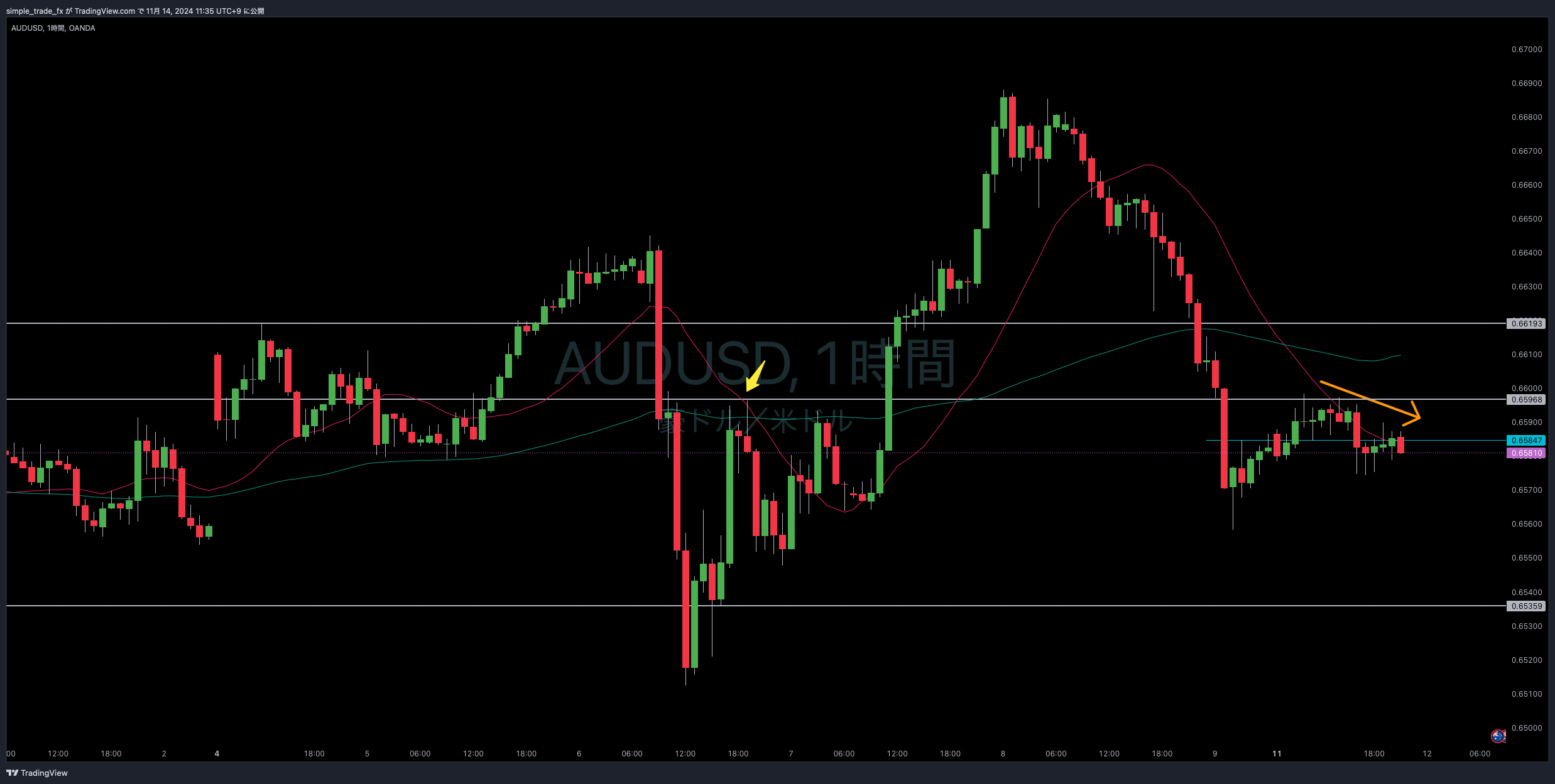 今回はトレード記事ではなくて、ノウハウ系の記事になります。未来のMA傾きはある程度想定できるので、いつもしているやり方を書いておきます。↓基本的には4hMA、1hMAの方向にトレードし、逆らうことはし