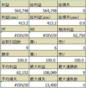 また、今回のEUR/USDの利確は想定したラインまで到達しましたが、USD/JPY,USD/CHF,CAD/JPYに関しては利確ラインを遠く設定しすぎたため、『例のインジケーターのピークアウト』にて手動で決済をいたしました(購入者の方にしかわからないものです)。ほかにも理由がありますが、これは商品の特別付録に書いてみたいと思います。