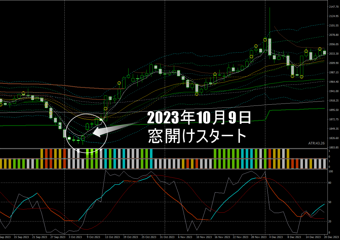 ここで、窓は閉まるというアノマリーが心理的バイアスとなり、下方向ばかりを気にしてチャートを見てしまった場合、