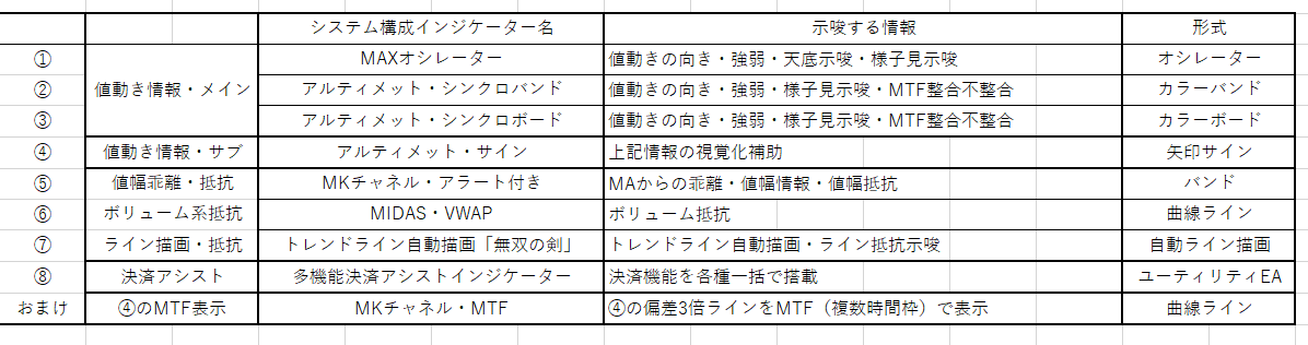 インジケーターは、以下、計8つのインジケーター(+おまけ)で構成されます。