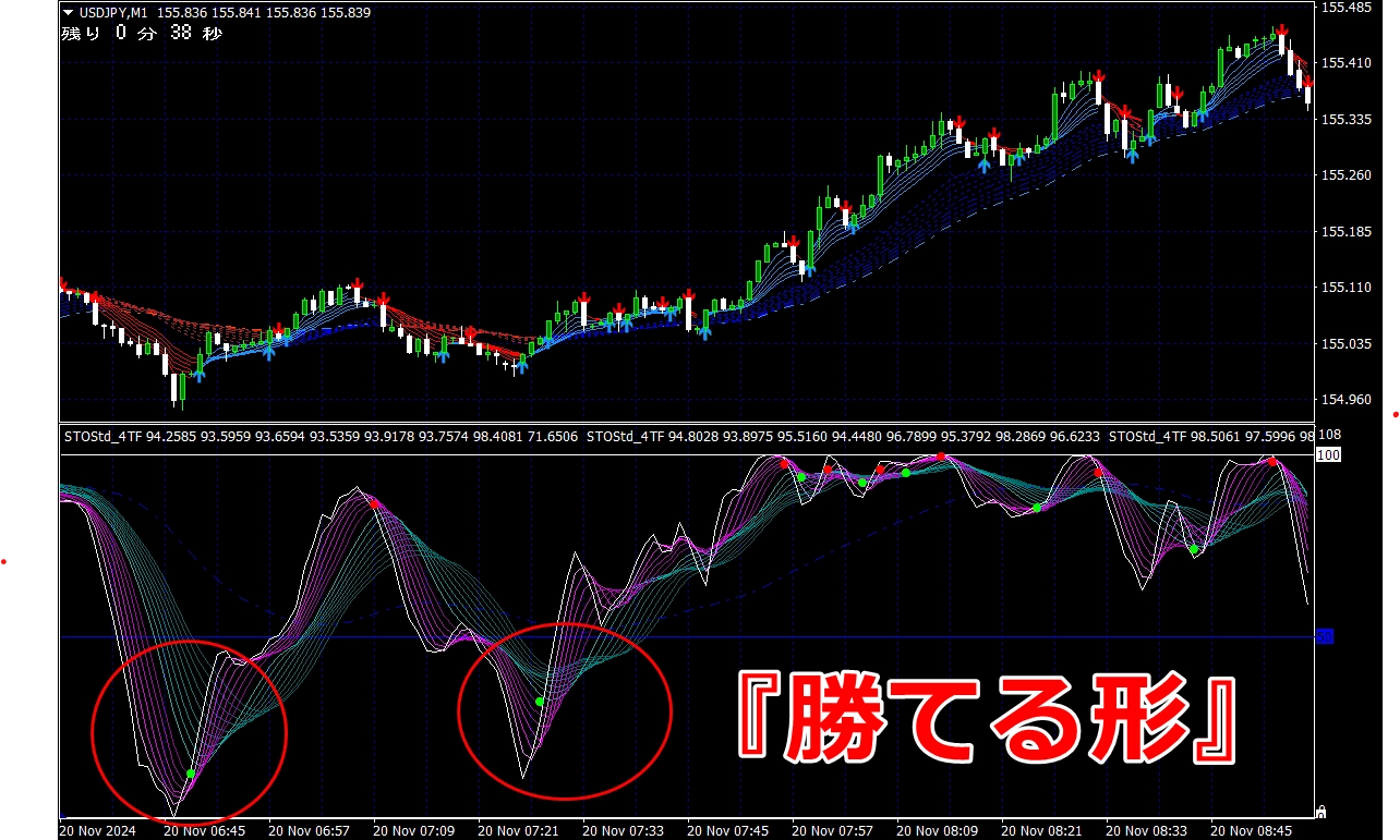 従いまして、上昇にしろ、下落にしろ、エントリーのねらい目は
