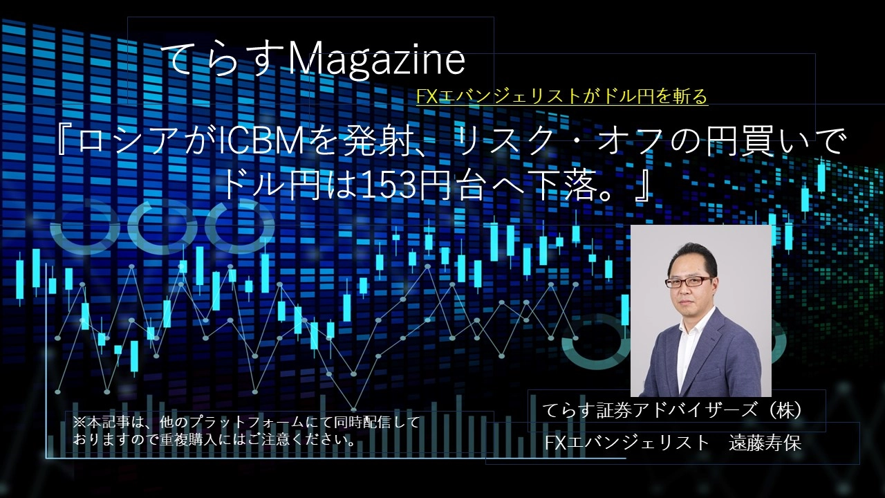 東京時間、ドル円は、地政学リスクに対する過度な警戒感が後退する中、ゴトー日(5・10日)の仲値に向けたドル買い観測で前日高値154.79円を上抜け155円台を回復。欧州時間、ドル円はジリ高となり155.88円まで上昇。NY時間、「ウクライナ軍はロシア領内の軍事目標に対し、英国製の長距離ミサイル『ストームシャドウ』を初めて発射した」との報道を受け、リスク・オフの円買い・ドル売りが先行するとドル円は155.05円まで下落。