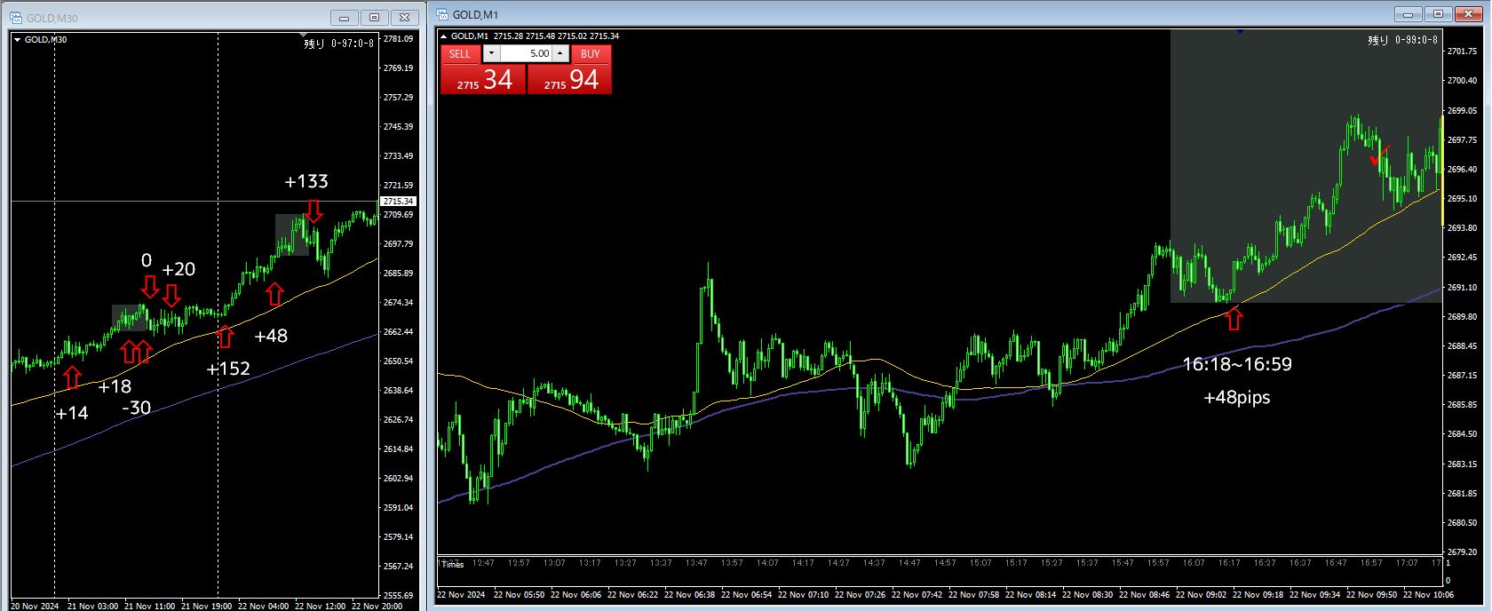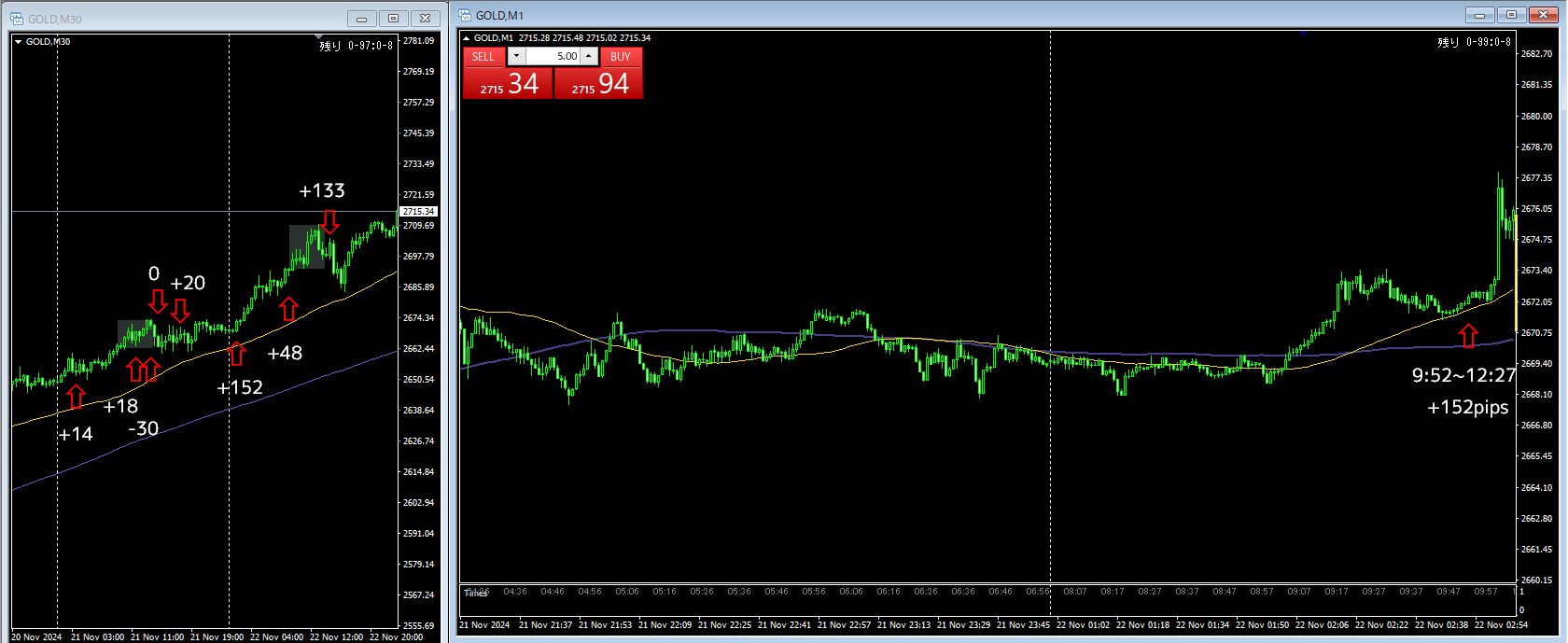 3戦3勝 +333pips(+152 / +48 / +133)