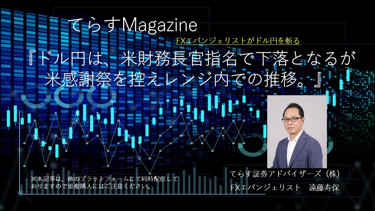東京時間、本邦10月CPI(全国消費者物価指数、生鮮食料品除く総合)が前年比で予想を上振れると、12月に日銀が利上との思惑で、ドル円は153.95円まで下落。その後、日経平均の堅調などを受け154.95円まで上昇。欧州時間、ユーロ円などクロス円の下落につれた円買い・ドル売りが先行し、ドル円は一時154.18円まで下落。しかし、その後はじりじりと下値を切り上げた。NY時間、11月米製造業PMI速報値は市場予想と一致、サービス部門と総合は予想を上振れると、米景気の底堅さからドル円は155.02円まで上昇。その後、11月米ミシガン大学消費者態度指数確報値が予想を下振れると、154円台後半へ失速。