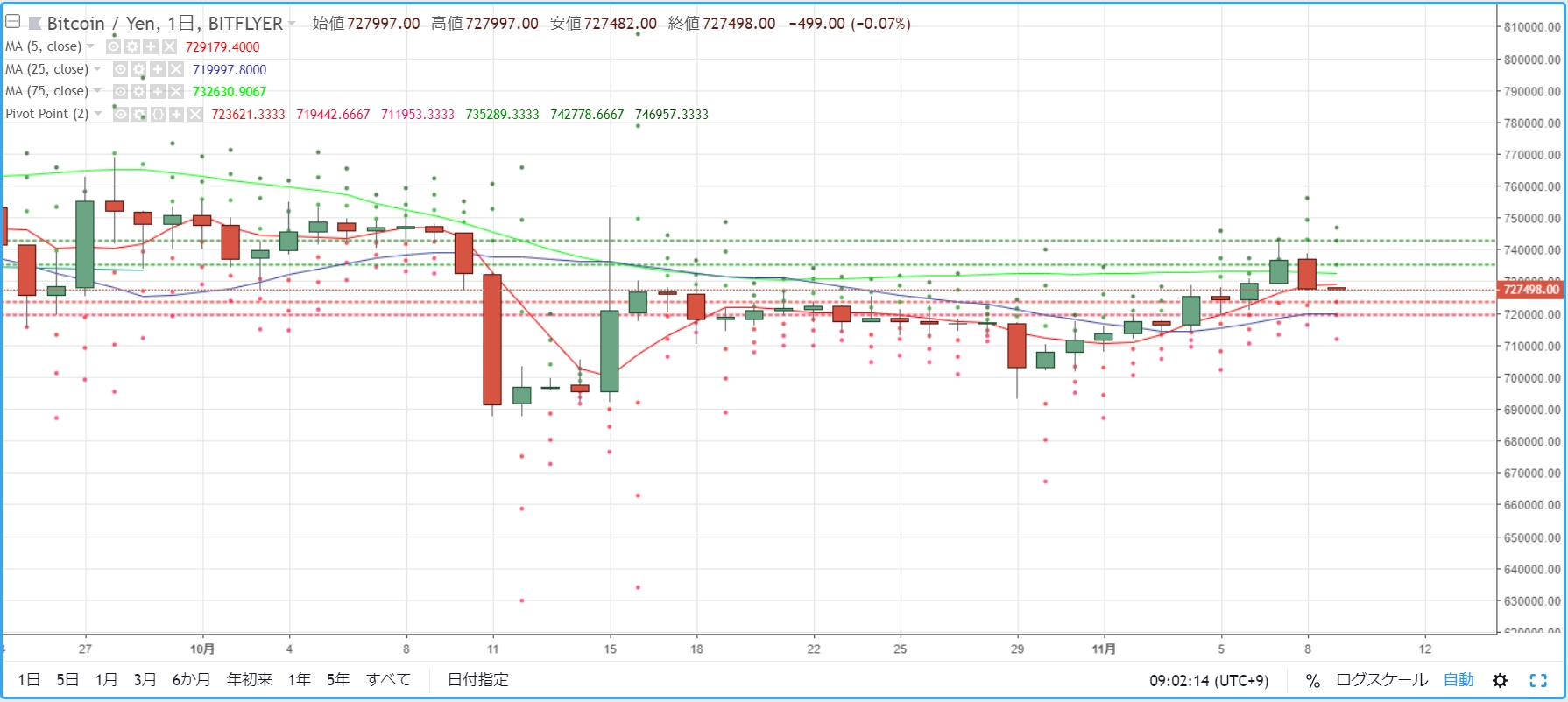 画像は2018年11月10日のキャプチャ。昨日、コワレとも呼べる下落が起こりましたが、その影響は今日にも響いています。リップルは「緑」に転換しているものの、ビットコインキャッシュをはじめ、ほとんどの銘柄が「赤」となっています。