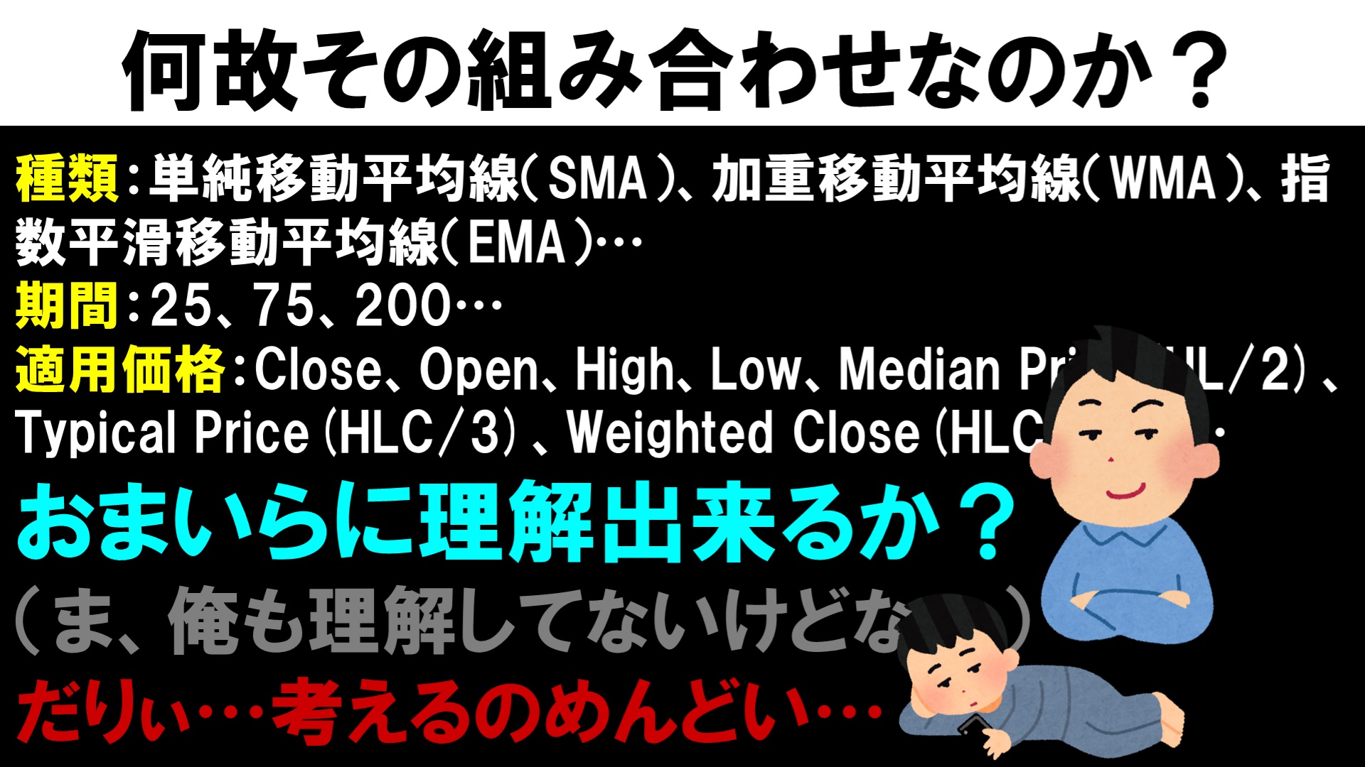そんなインジケーターを3つも4つも重ねるなど…正気の沙汰ではありませんね。