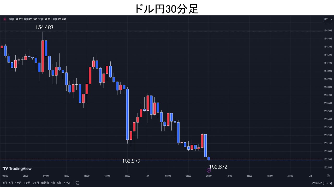 ドル円、トランプ次期米大統領の関税強化発言受け152円台へ下落。