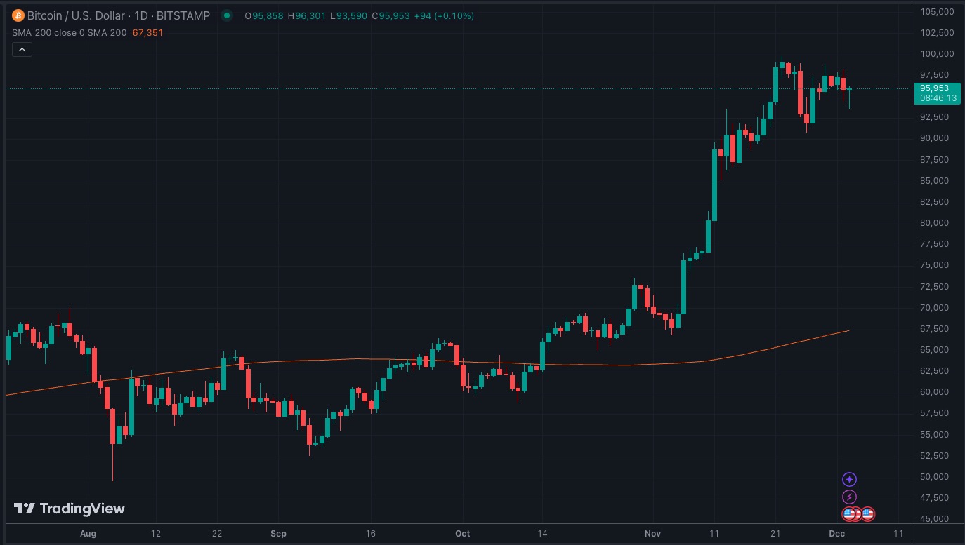 ビットコインは先週92,000ドルの価格から上昇し、10万ドル手前の98,000ドル(約1460万円)まで上昇しました。