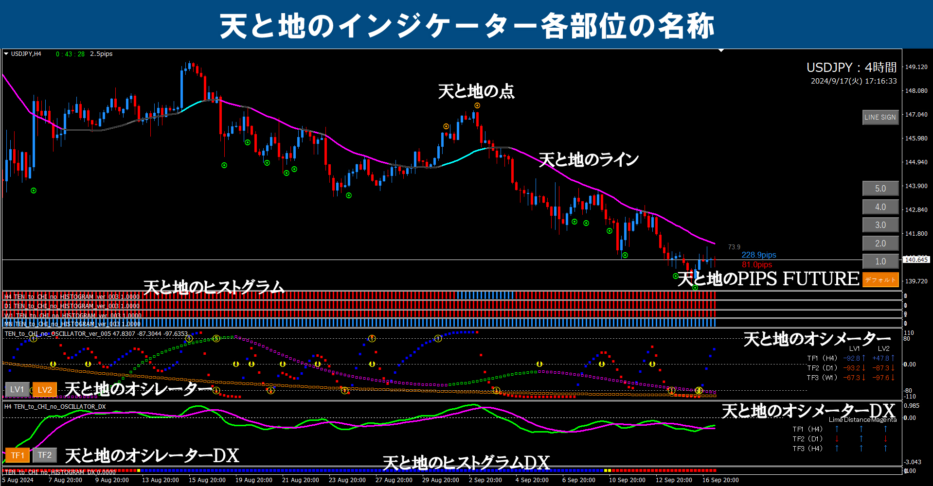 ・本記事では「天と地のインジケーター」を使用した「天と地のデイスイング」という手法での検証、考察をしております。天と地のインジケーターの基本のトレード方法につきましては2024年8月以前の記事をご参照ください。