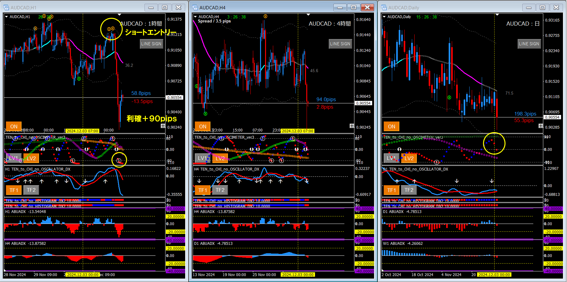 【2024年12月4日】+90pips!天と地のインジケーターのデイスイング手法検証(オジカナ)