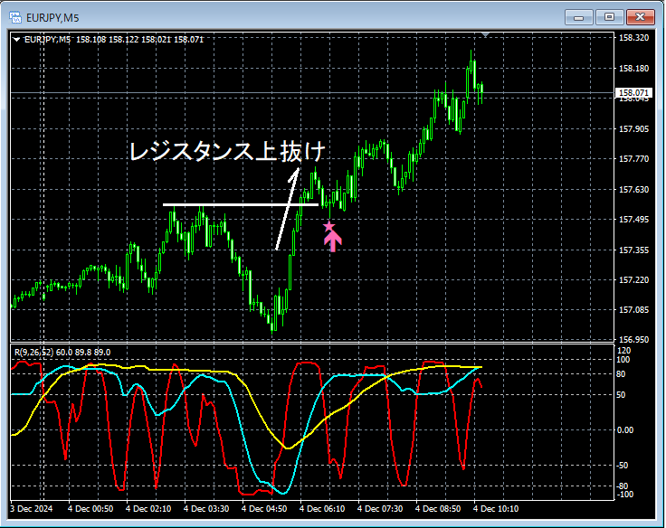 【本日 2024.12.04 のユーロ円】レジスタンス上抜けとmBDSR(RCI2本フィルター)の押し目買いサイン