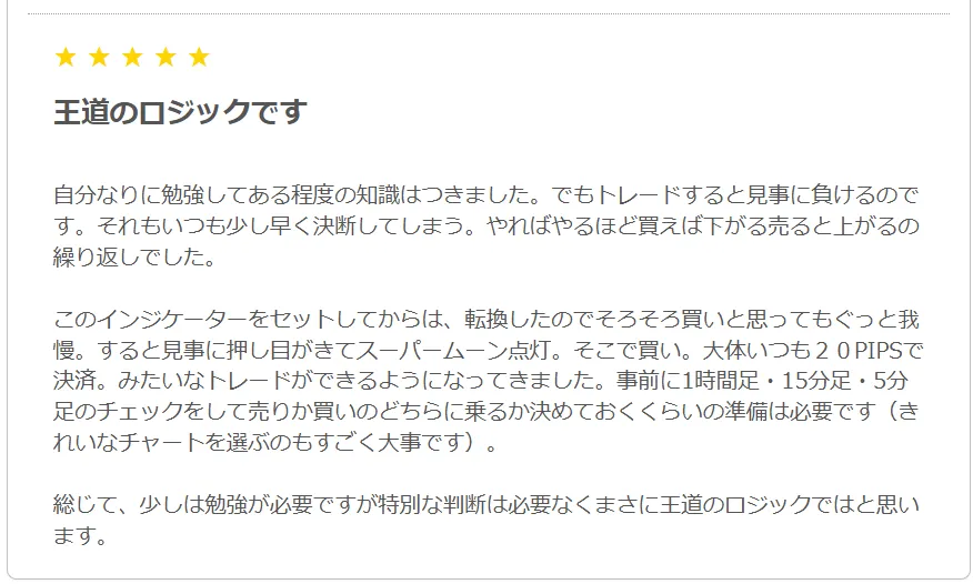マニュアルやコミュニティにも書かれていますが、勝率をあげるにはダウ理論やN字、チャートパターンの習得も必要ですが、別にこれだけでも勝てる日には勝てます。初心者さんにはありがたいツールだと思います。