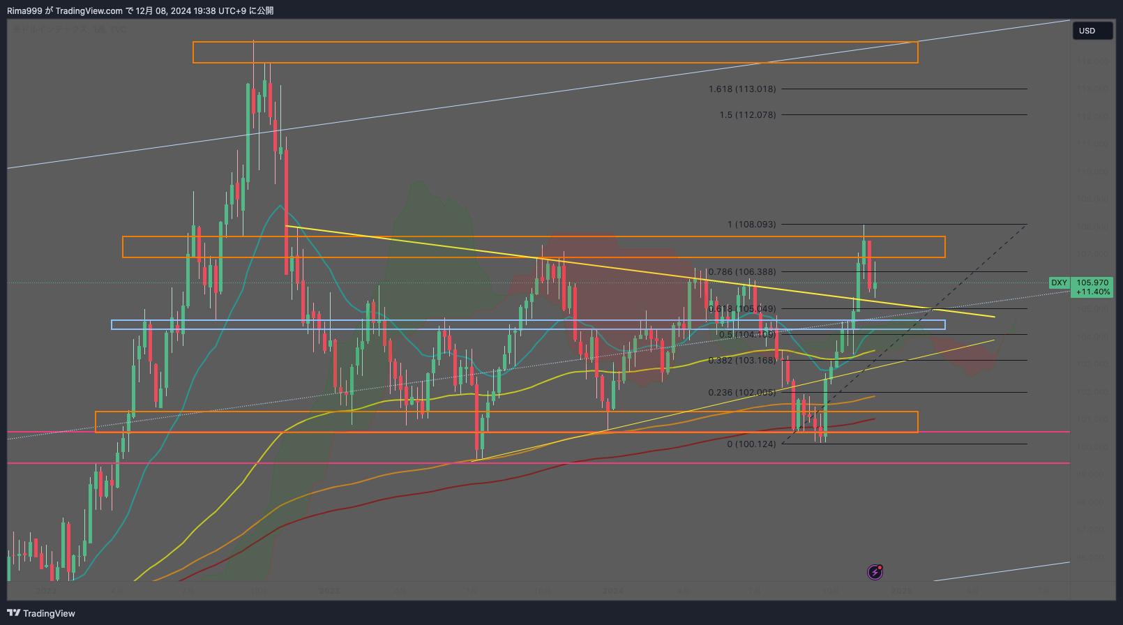 - →ネック割り直した場合はレンジ継続or月足ゾーン割れのドル安シナリオも想定