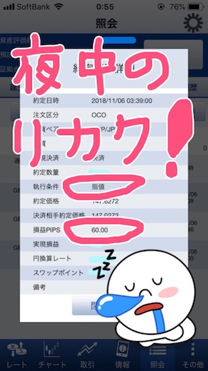 → 利食いは60pips、損切りは50pipsでOCOでセット