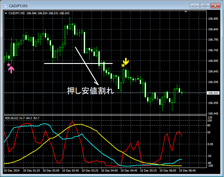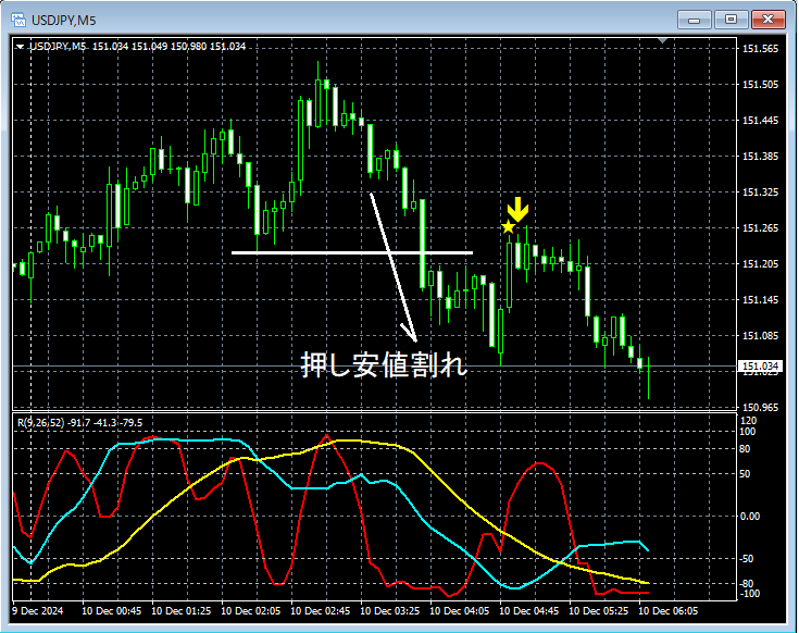 【本日 2024.12.10 のドル円 他】押し安値割れとmBDSR(RCI2本フィルター)の戻り売りサイン