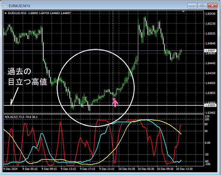 【本日 2024/12/10 のユーロオージー】上位足における戻り高値と目立つ高値と下位足におけるmBDSR(RCI2本フィルター)の押し目買いサイン