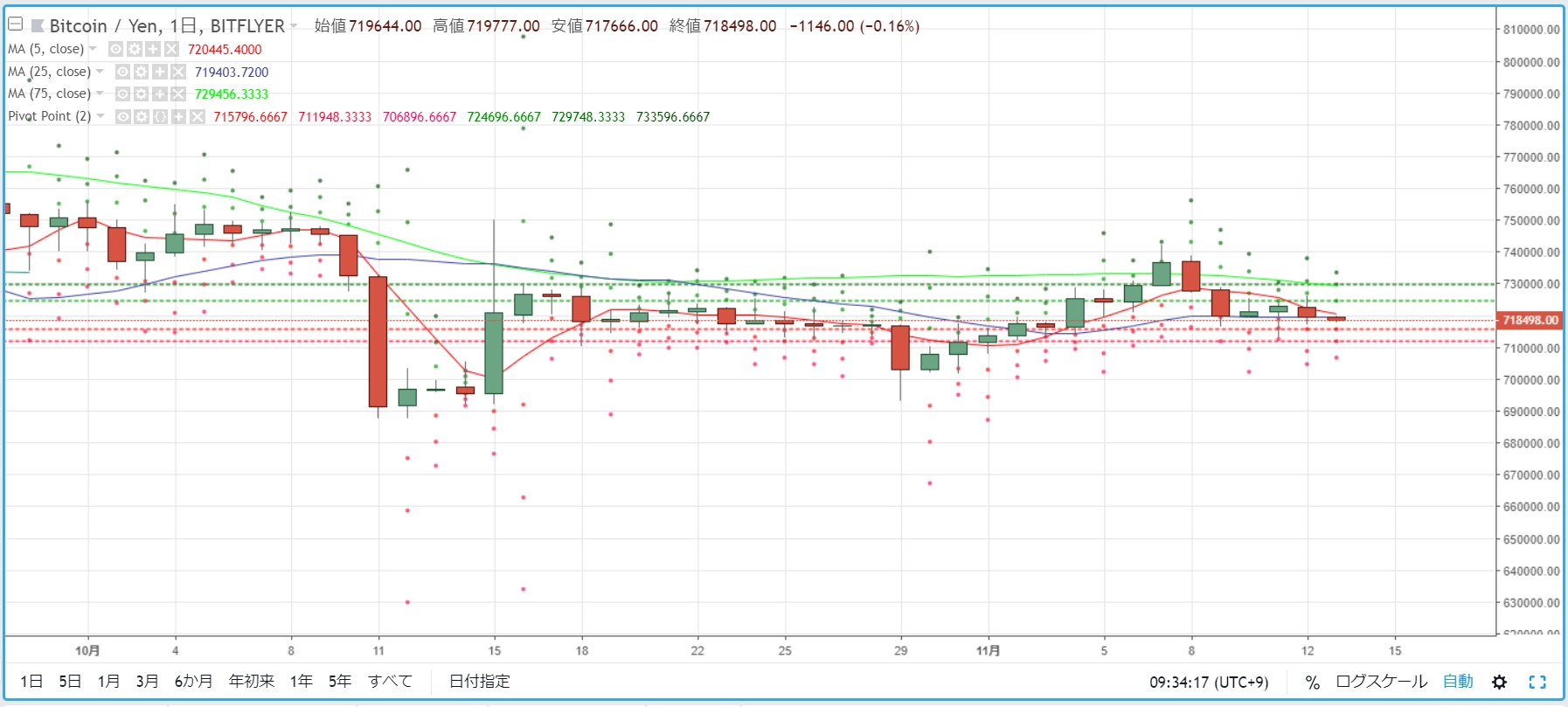 画像は2018年11月14日のキャプチャ。3日連続で「赤」が目立つ相場環境となっています。ただ、昨日、今日(現時点)での下げ幅は、大人しいもので、悲観するものではなさそうです。昨日、一人気を吐いたリップルも、今日は一休み。
