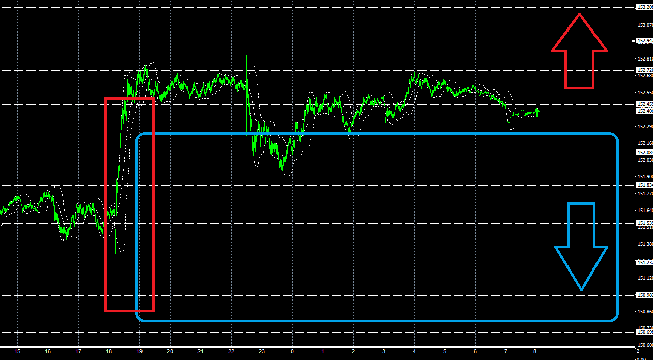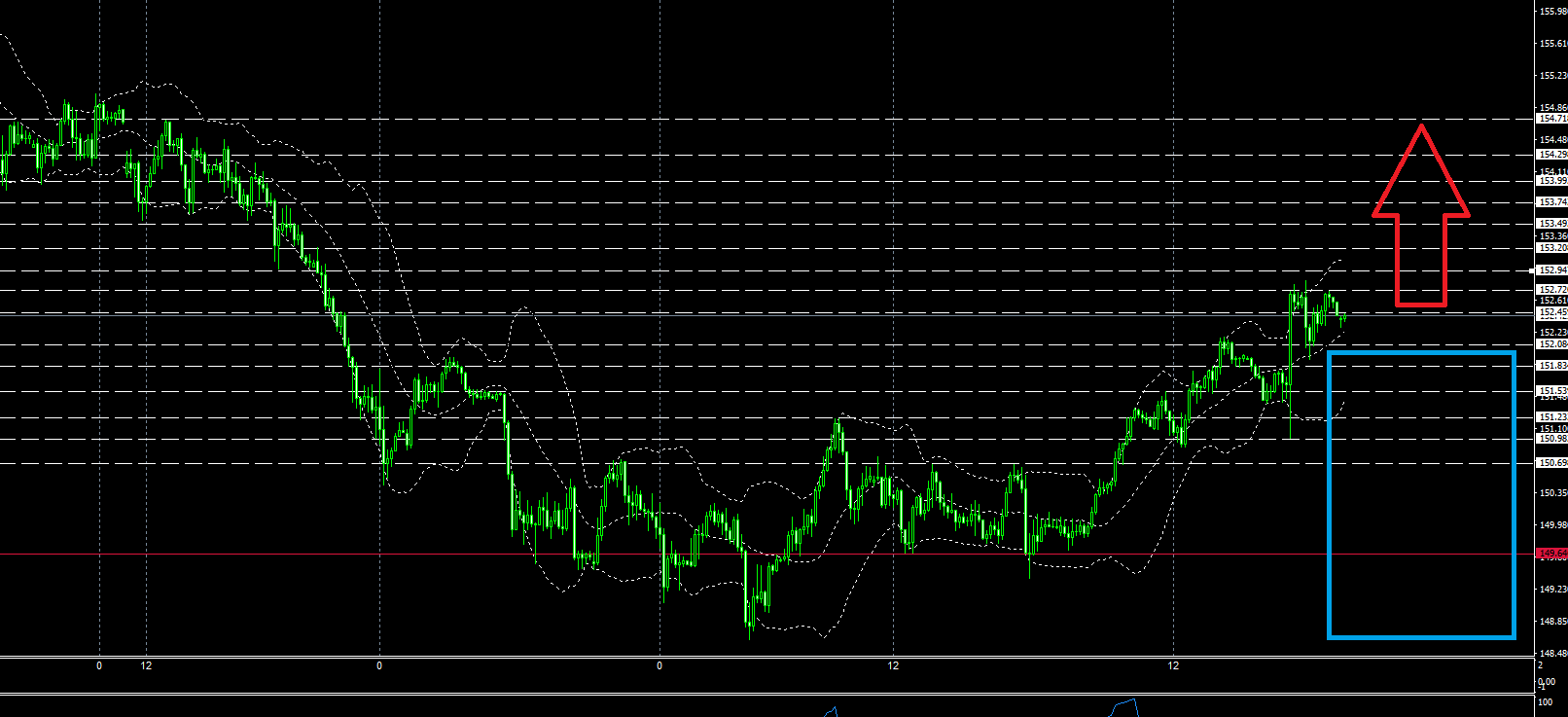さて、植田総裁がインフレに振れた事で相場は一旦上昇し、9時現在でも152円を付けています。