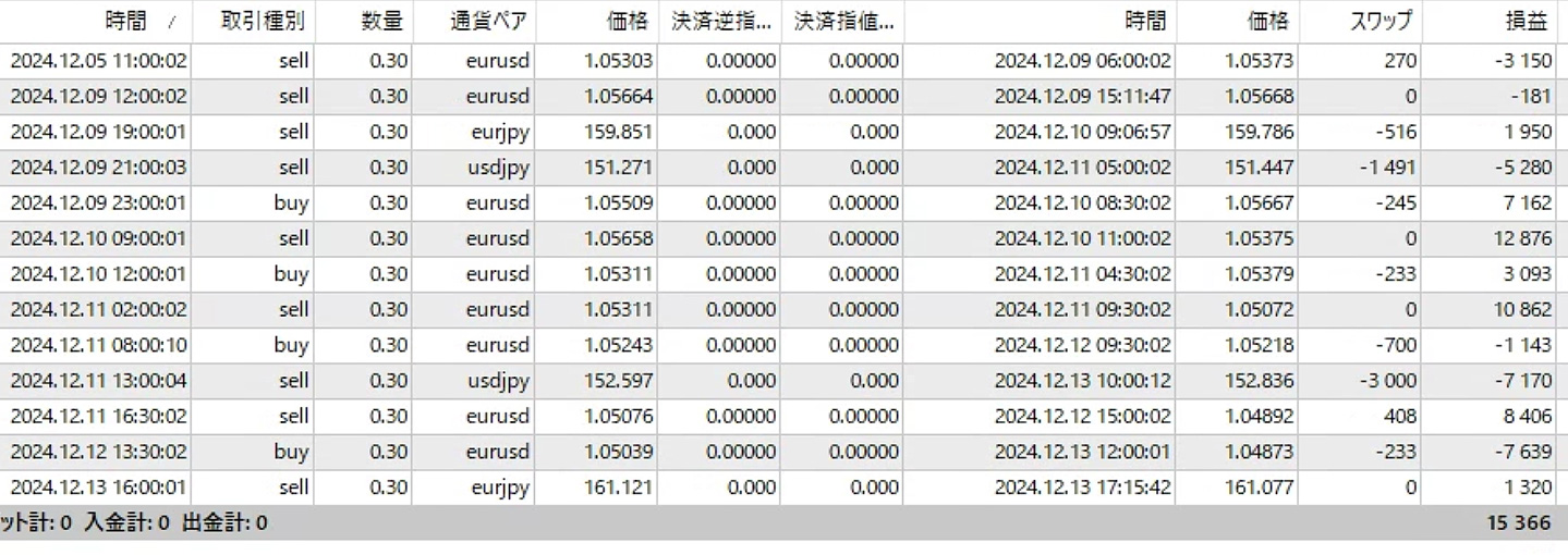 (証拠金1,000,000円 / 0.3Lots で取引)