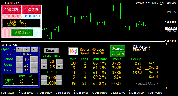 先週のRSI設定【12月9日】 *設定値は、ATS-12RSIのオートサーチ機能で抽出。