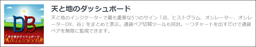 今回の記事は、先日行った「天と地のインジケーター」と「天と地のダッシュボード」の最新アップデートについてご説明させていただきます。ユーザーの方でまだ最新バージョンをDLされていない方は早めにアップデートを行ってください。宜しくお願いいたします。