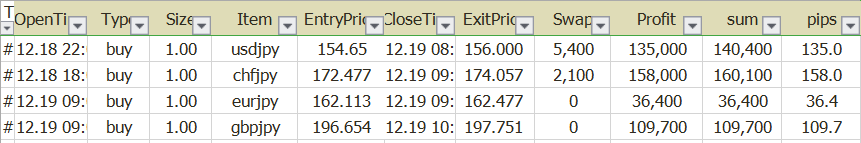 ⑤12/19 利確ラインまで到達しEAにより自動決済完了。