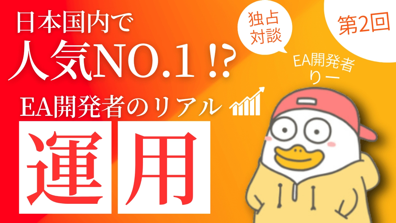 こんにちは、ゴゴジャンの早川です。今回の動画では、大人気EA開発者のりーさんをお迎えしております。りーさんは、ゴゴジャン内のみならず国内EA業界で最も人気といっても間違いない"トリプルスキャルパー"の開発者で、これまでに1200本近くも販売されているという実績をお持ちです。今日はその背景やご経験について詳しくお伺いしたいと思います。りー様、本日はどうぞよろしくお願いいたします。