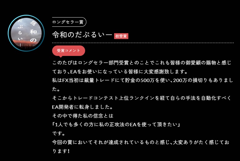 FX自動売買、EA開発者の令和のだぶるいーです。