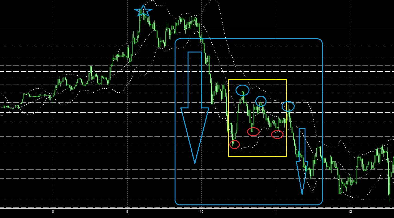この場面はチャートパターンで言えば「下降ペナント」になるのかな。