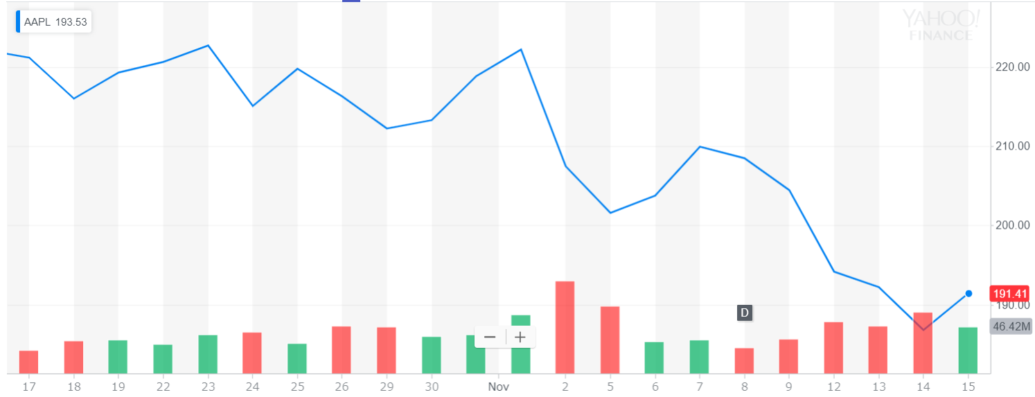 保有中の米国株 今週の値動き(2018/11/17)