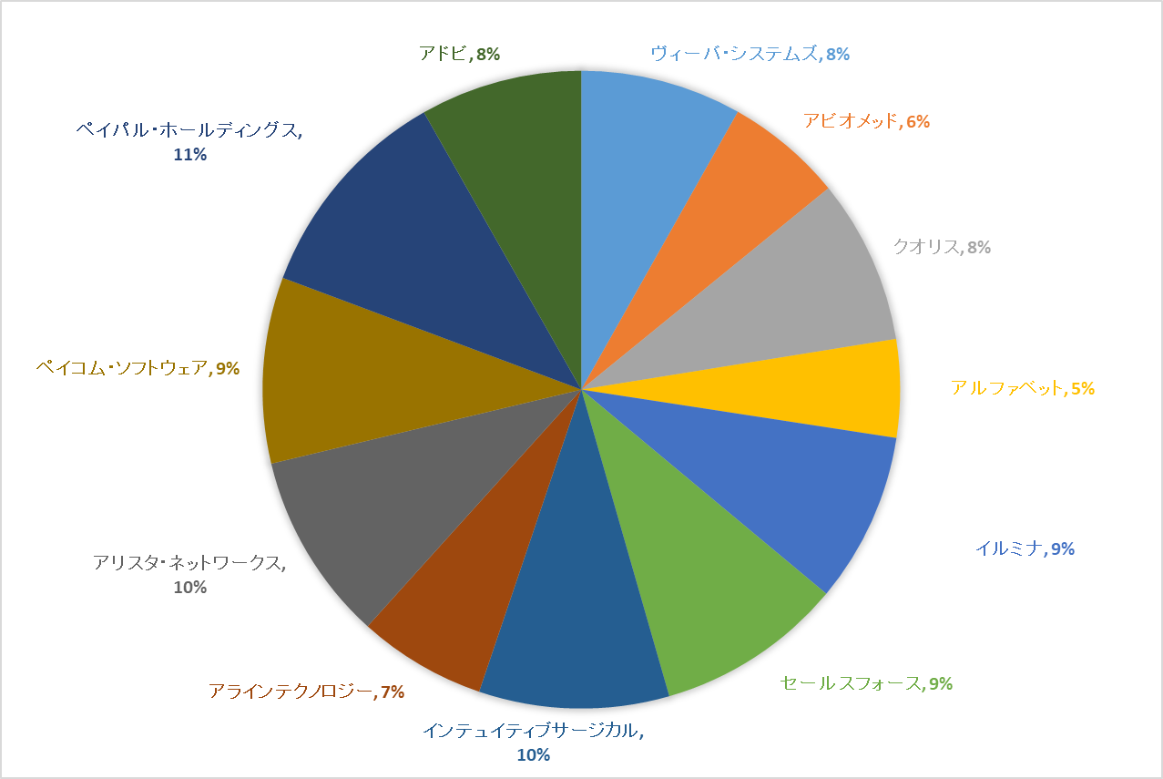 - アリスタ・ネットワークス(ANET)10%