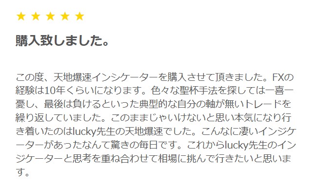 「天地爆速を導入してから、相場の流れが視覚的に理解できるようになり、トレードの成績が格段に上がりました!」