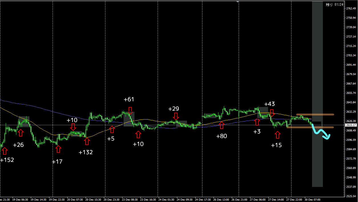先週+246pips!12/23~12/27の部分をご覧ください。