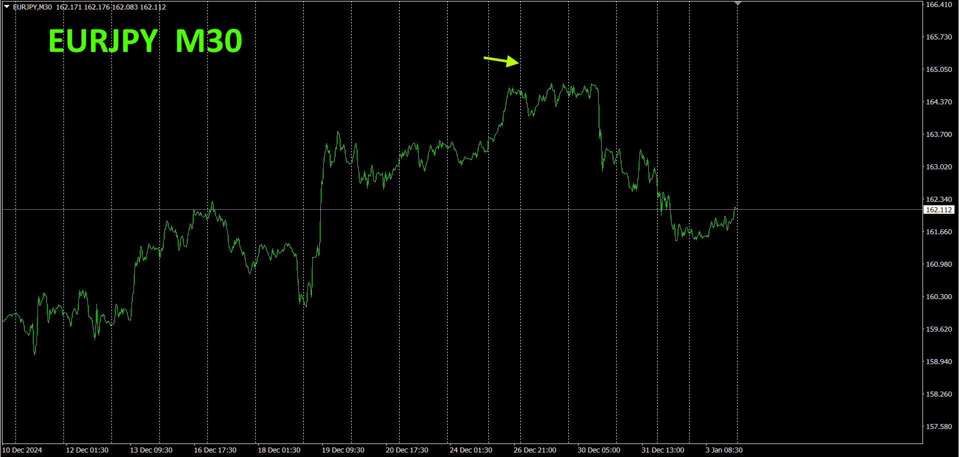 年末年始は、相場に動きがない事が多いのですが、ここはしっかり取れた所です。一般的には、クリスマスやお正月には、トレードをしないで、過去検証やデータ分析をする方が良いと考えています。