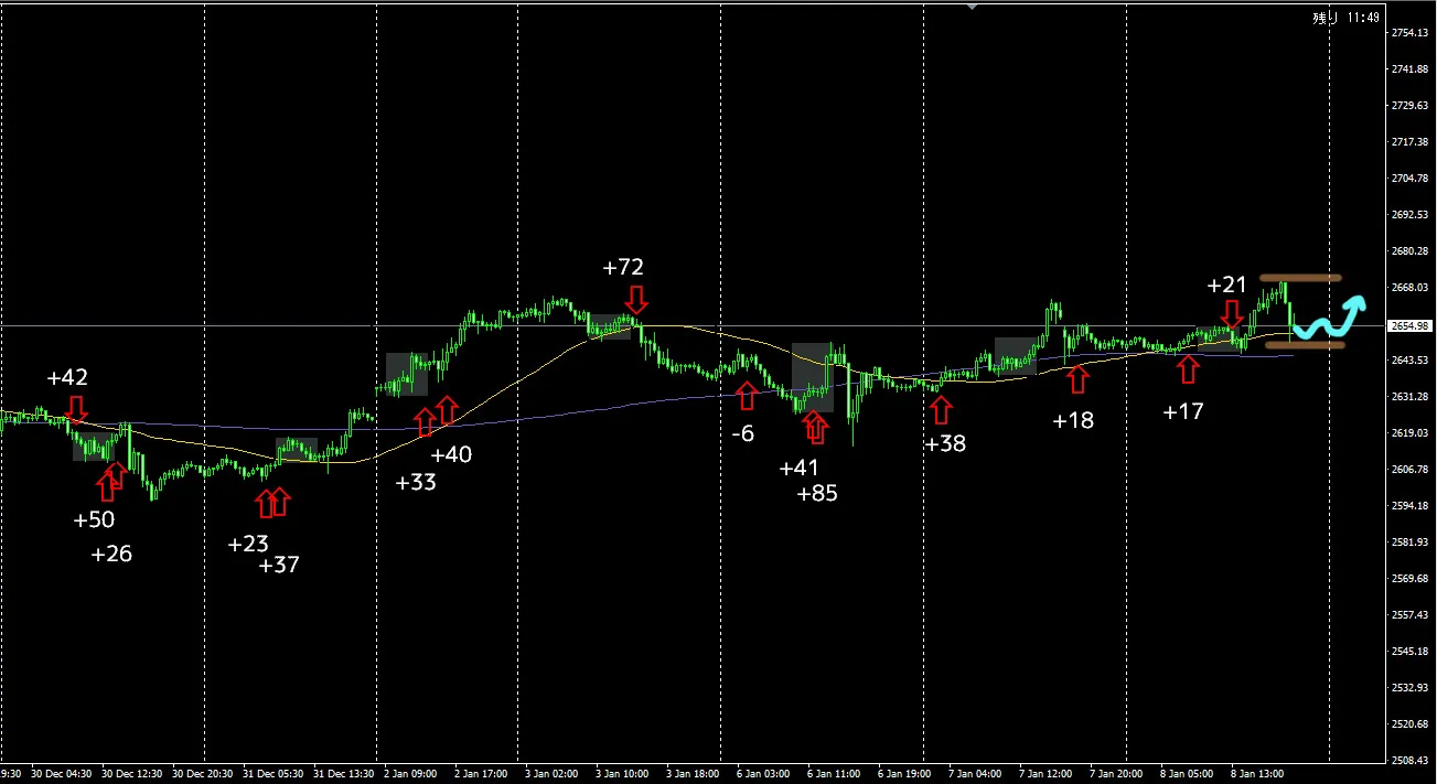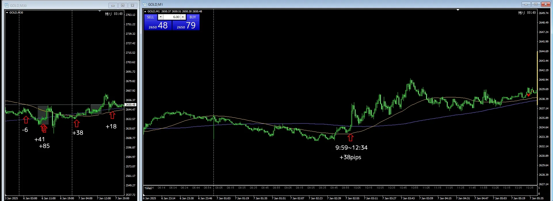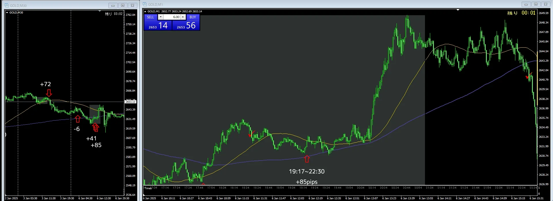 3戦2勝1敗 +120pips(-6 / +41 / +85)
