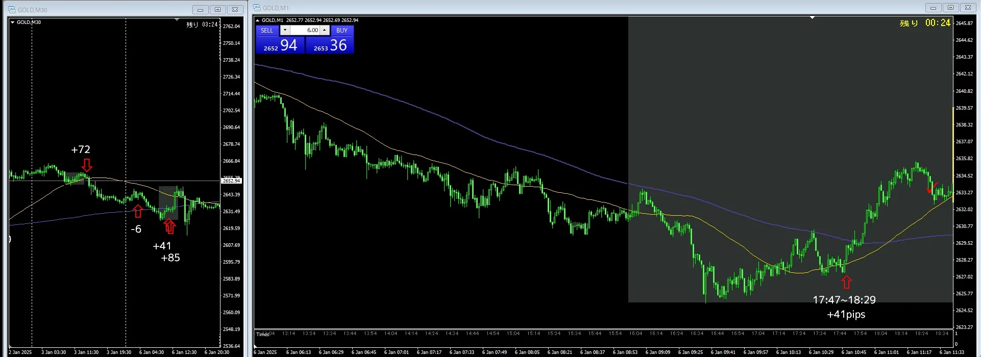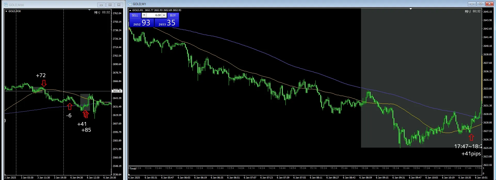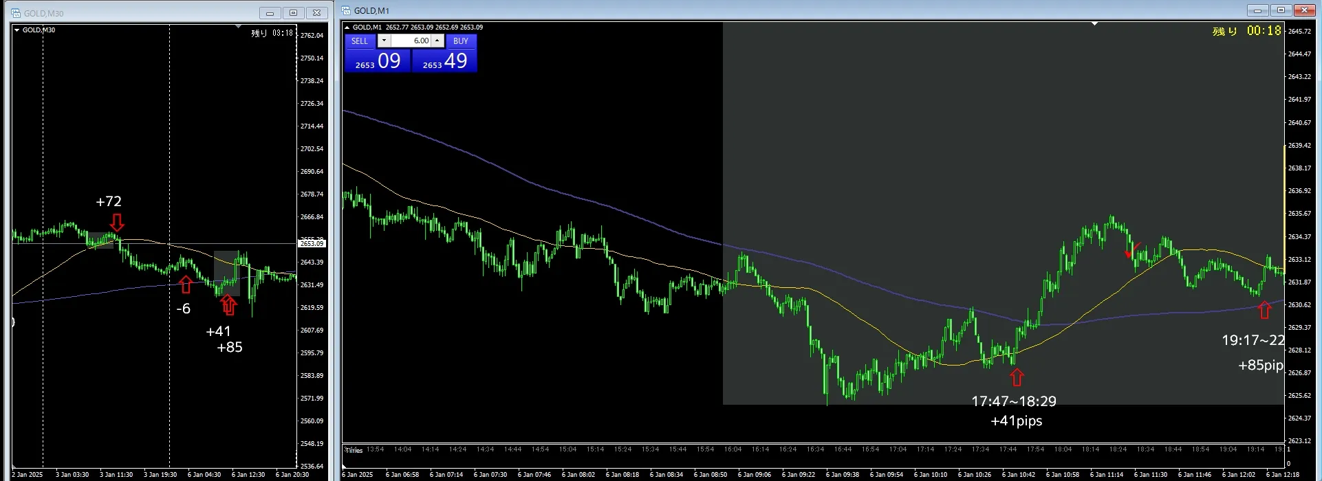 手法: ポイントポイントでチャートのリプレイ機能や手動でチャートを巻き戻し、
