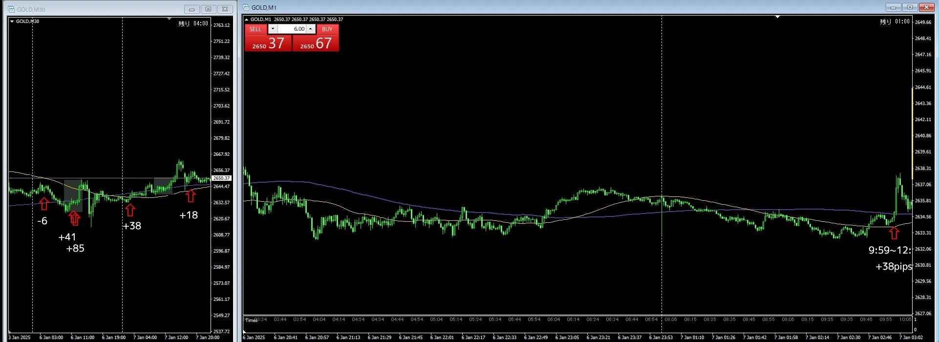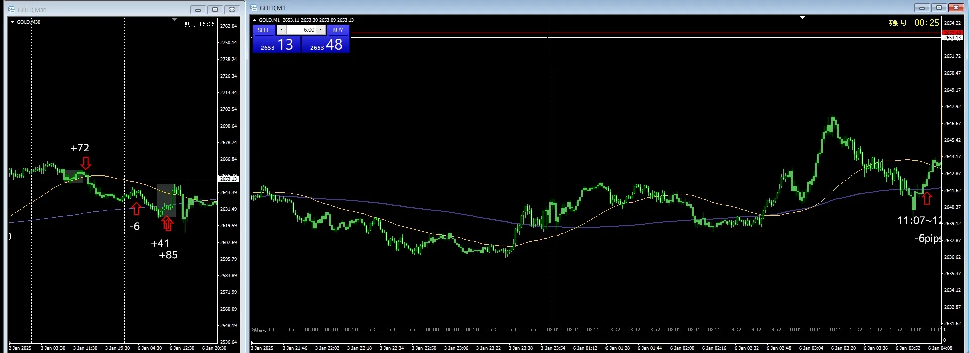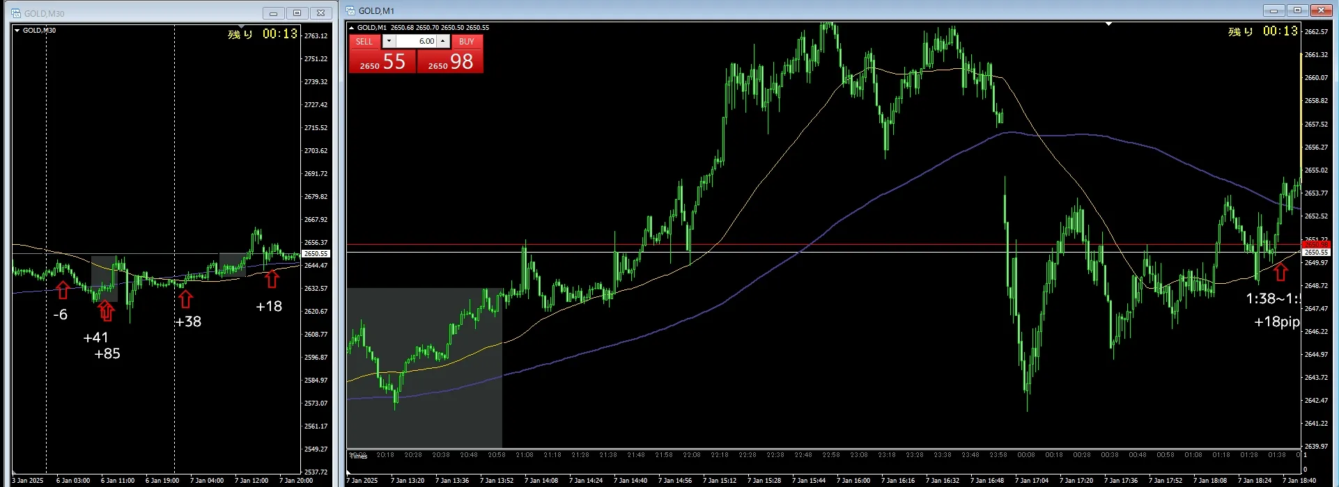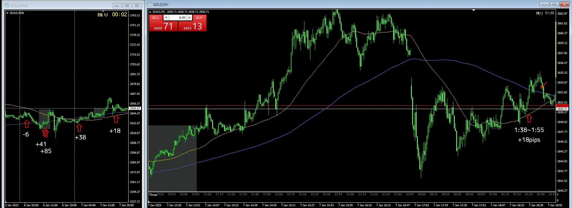 手法: ポイントポイントでチャートのリプレイ機能や手動でチャートを巻き戻し、